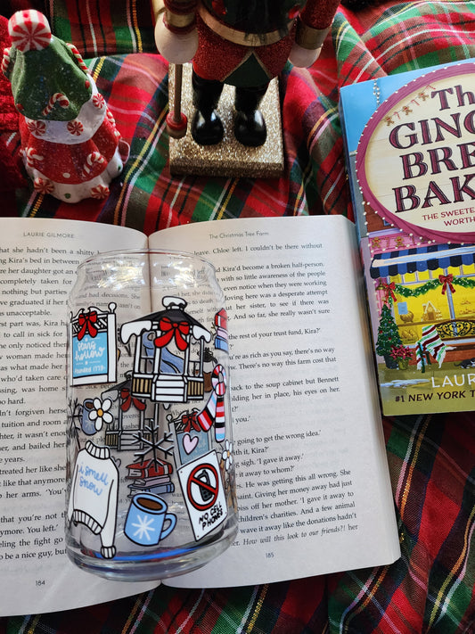 Holiday Book Club 16oz glass can| Winter| Christmas| Cute Glass Can|Glass Tumbler w/Straw & Lid|