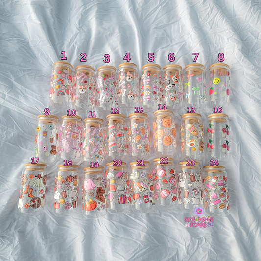 Cherry Coquette Bows Wrap 16oz Clear Glass Can