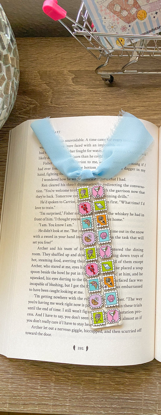 Summer Stamps Acrylic Bookmark| Beach Days| Bookish| Bookmark| Cute Bookmark| Book Lover Bookmark| Gifts for Book Lover| Books|Book Accessories|Bookish|