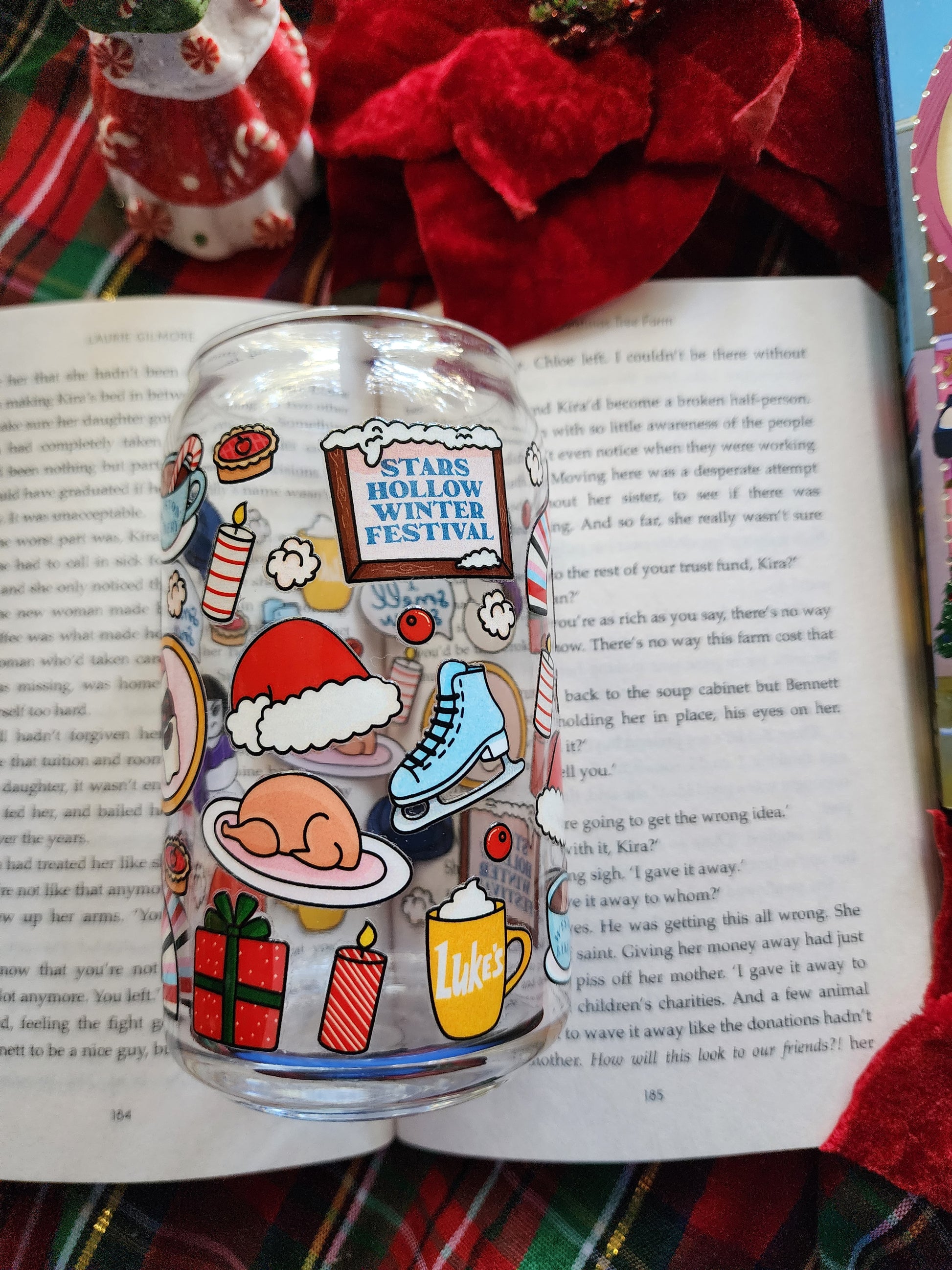 I Smell Snow Stars Hollow 16oz glass can| Winter| Christmas| Cute Glass Can|Glass Tumbler w/Straw & Lid|