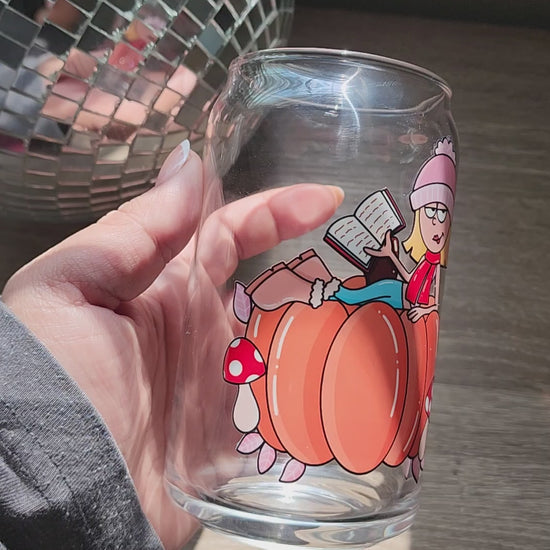 Lizzie M. Fall 16oz glass can| Autumn| Fall Bookish| Cute Glass Can|Glass Tumbler w/Straw & Lid|