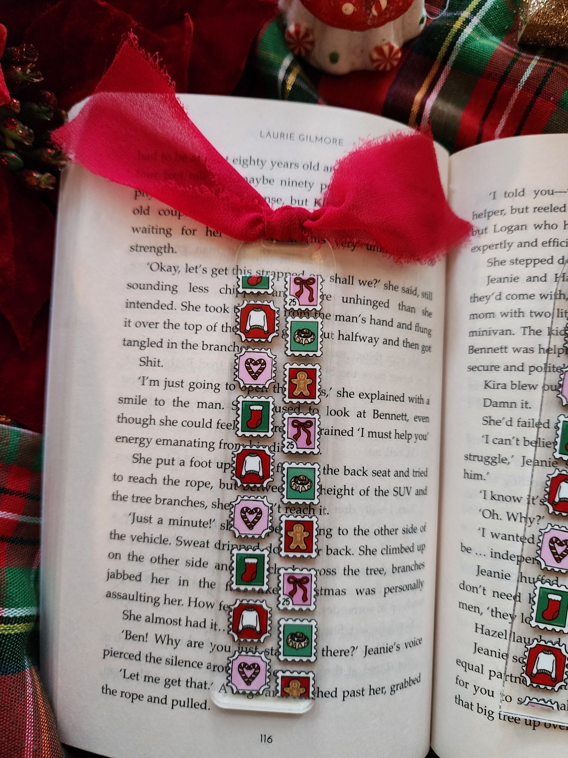 Christmas Stamps Acrylic Bookmark| Holiday|Christmas|Bookish| Bookmark| Cute Bookmark| Book Lover Bookmark| Gifts for Book Lover| Books|Book Accessories|Bookish|